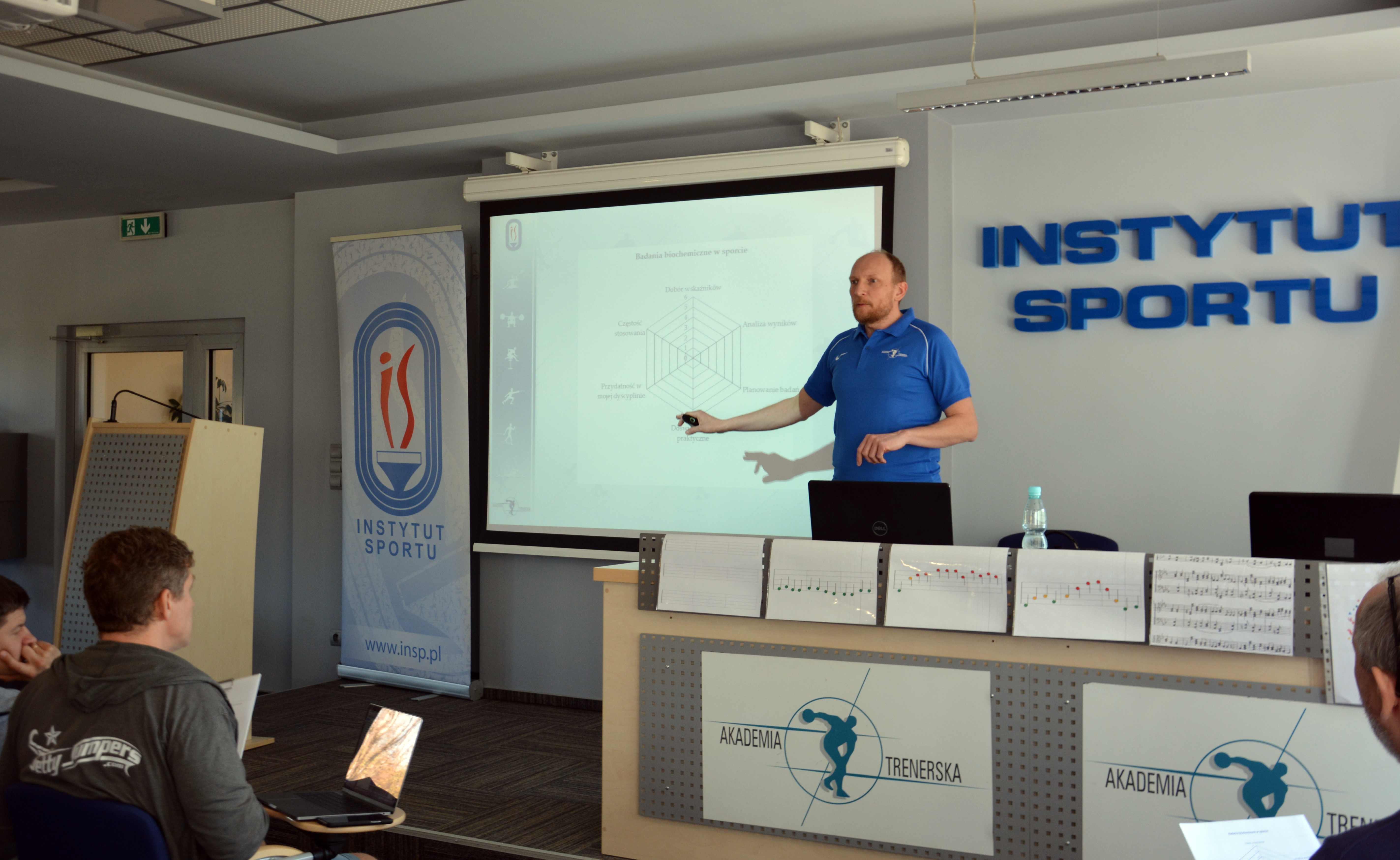 Podczas jednodniowego szkolenia trenerzy zapoznali się z fizjologicznymi i biochemicznymi metodami oceny stanu wytrenowania i zdolności wysiłkowych zawodników. Omówiono rodzaje badań, częstość ich przeprowadzania, panele badań, ćwiczono jak interpretować wyniki. Wyniki badań pozwalają sprawdzać i weryfikować założenia treningowe, podkreślano jak ważne jest umieszczanie ich w planie treningowym i kiedy najlepiej to robić w makrocyklu. Dzięki badaniom okresowym (sprawdzającym ogólny stan zdrowia i wykrywającym niedobory), dodatkowym (monitorującym efekty leczenia i wyrównania niedoborów) oraz badaniom monitoringowym (oceniającym reakcję organizmu na wysiłek fizyczny podczas zawodów, zgrupowań i podczas testów wysiłkowych) trenerzy mają stały dopływ informacji o skutkach swoich działań i zmianach adaptacyjnych następujących u zawodników pod wpływem stosowanych obciążeń.
