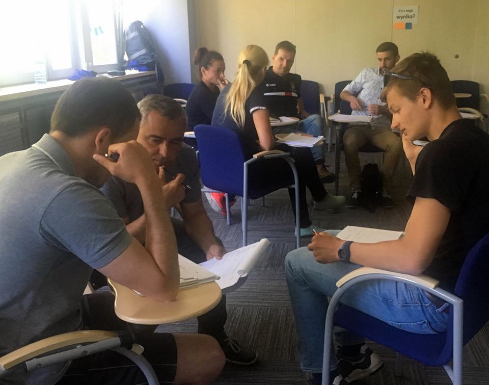 Kurs z psychologii sportu organizowany w ramach Akademii Trenerskiej składa się z trzech etapów: udziału w dwóch szkoleniach stacjonarnych i pracy własnej na zasadach e-learningu. W dniach 28-29 maja w Instytucie Sportu trenerzy wzięli udział w warsztatach kształtujących różne umiejętności psychologiczne przydatne w pracy trenera: regulowania procesów emocjonalnych w sytuacjach startowych i treningowych, efektywnej komunikacji, kształtowania i utrzymywania u zawodników poczucia własnej skuteczności, kształtowania umiejętności myślenia refleksyjnego .