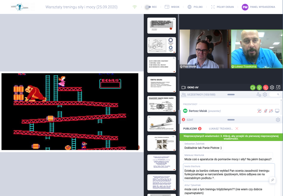 Zajęcia były prowadzone przez znakomitych i uznanych specjalistów - dr. Łukasza Trzaskomę (na co dzień pracującego z kadrą sportowców oraz na uczelni sportowej w Budapeszcie, wielki autorytet i kontynuator cenionej szkoły treningu siły i mocy swego Ojca prof. Zbigniewa Trzaskomy) oraz Marcina Lampe (trenera podnoszenia ciężarów, asystenta trenera kadry narodowej) i Bartosza Malaka (trenera podnoszenia ciężarów i przygotowania motorycznego). Szkolenie składało się z cyklu warsztatów demonstrujących ćwiczenia na siłowni, wykładu prowadoznego przez prof. Trzaskomę oraz dyskusji trenerów z prowadzącymi - rzadko spotykana możliwość zadania pytania bezpośrednio wykładowcom w odniesieniu do swoich doświadczeń trenerskich.