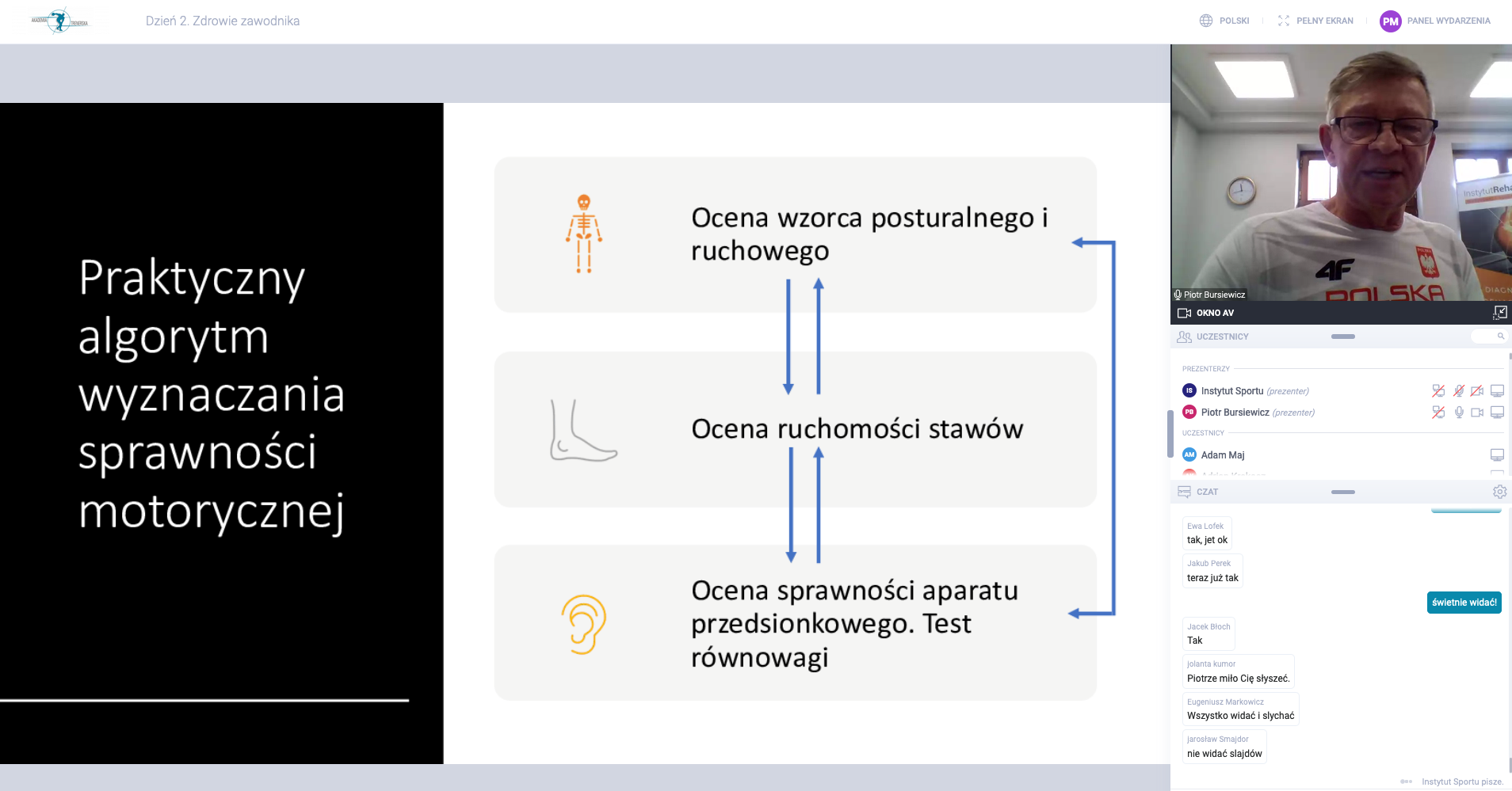 Temat zdrowia zawodnika został potraktowany wieloaspektowo i komplementarnie m.in od strony medycznej, fizjologicznej, psychologicznej i treningowej. Szkolenie objęło najważniejsze zagadnienia w zakresie podstawowych działań profilaktycznych (strategie żywieniowe, zachowania wobec zawodnika, prawidłowego stosowania metod i środków regeneracji) oraz dostarczyło wiedzy i praktycznych narzędzi i sposobów reagowania w sytuacjach zagrożenia utraty zdrowia i kontuzji.